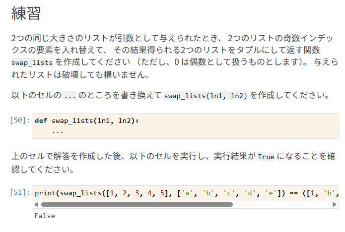 ・ln1[j], ln2[j] = ln2[j], ln1[j]は同時代入。こんなの習ったっけ?←2.2リストで多重代入という話があった。