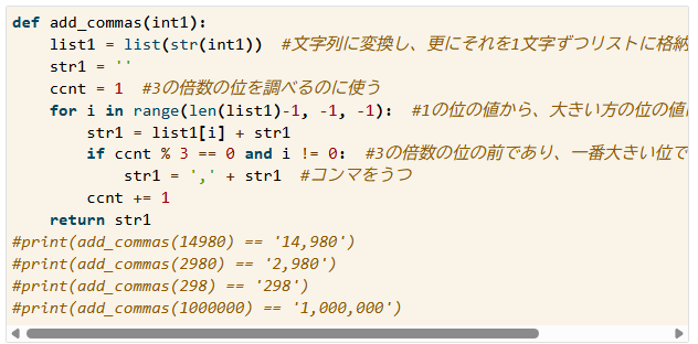 ⇒以下の解答を作成したところ正解。whileを使う時はx=1とx += 1の併用が分かりやすい。len(word)はコンマでwordの長さが変わるから、「-x」を入れている。また、whileの終点も変わると面倒なので、最初に定数tにした。