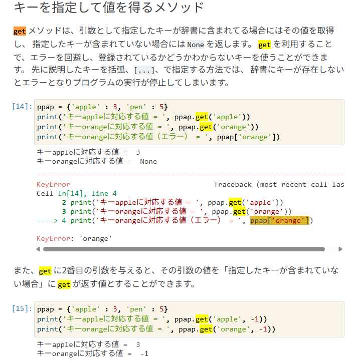value) を使いたいときは、dic1[key]として改めて辞書から取り出す必要があります。