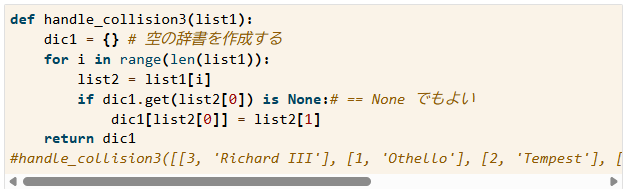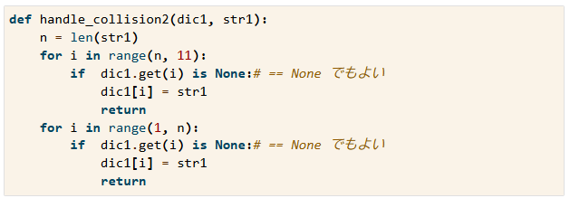 以下が模範解答。まずgetメソッドを忘れていた。rangeでiにnから順番に11の前(10)まで入れる。return dic1にしなくて良いのか?←dic1 は参照渡しなので変更が反映される、とのこと(ChatGPT)。それ自体を変更する場合はreturnが不要で、新しく作る場合は必要って話だと理解。