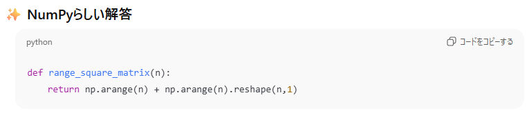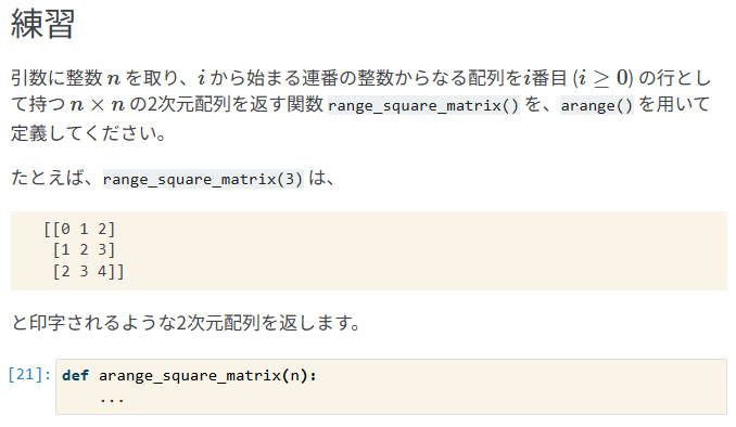 こういった1次元配列が連続したリストをnp.arrayで2次元配列でまとめているという理解のよう。これもChatGPTで理解できましたが、テキストだけ見ても分からなそうな。この問題は不親切な気がしました。色々勉強にはなりましたが。