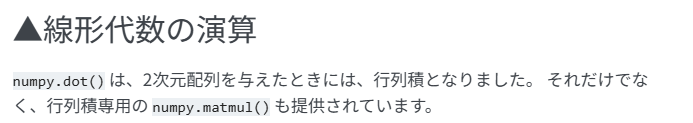 ⇒numpy.dot()と numpy.matmul() の違いが良く分からなかったのでChatGPTに説明してもらいました。