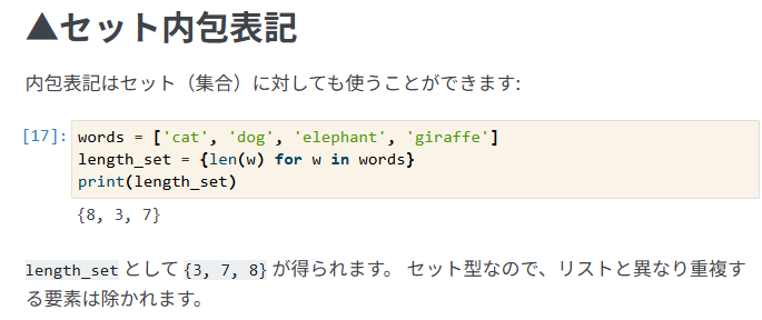 ⇒以下の解答を作成したところ、エラー発生。こういう使い方はできないんですね。リストの中に無いと内包と言えないからですかね。