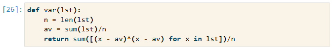 var = sum((lst[x]-ave)**2 for x in range(len(lst)))/len(lst)